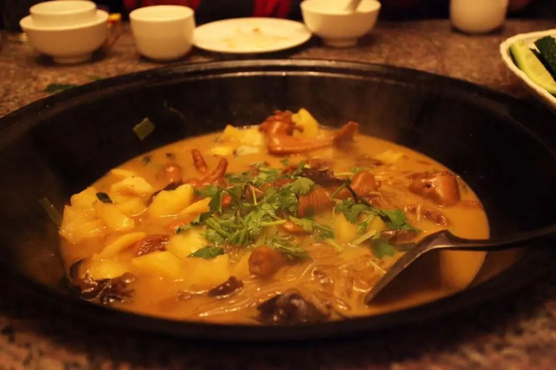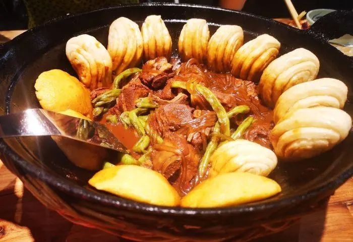 因为整条羊脊骨的形状像是一只张牙舞爪的蝎子,于是被命名为“羊蝎子”,羊蝎子锅源自本地的上等羊脊骨用古法浓汤熬煮,老汤吊味,配上数十种秘制材料,这样煮出来的羊蝎子每一块都吸饱了汤汁,大锅炖熟后可以直接食用,也可以涮火锅。