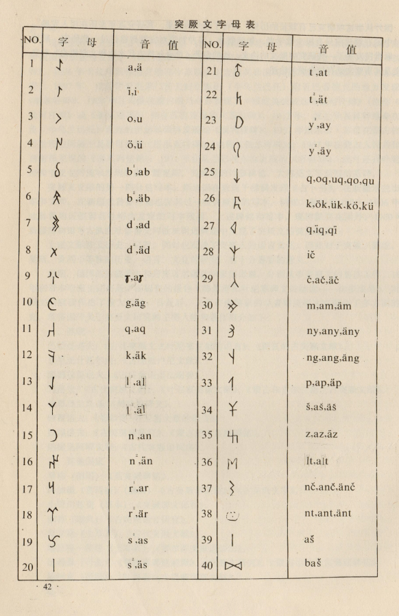 突厥文的40个字母,按其表音功能,大致可以分为以下几类: