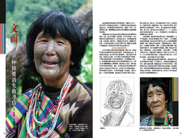 我国独龙族人生活在独龙江峡谷与横断山脉纵横交错的峡谷地带。过去,由于山水阻隔,交通不畅,与外界交往甚少,所以保留有许多独特的民族文化。到20世纪50年代,仍然保留着刀耕火种、刻木记事、结绳计时、文面等生产生活方式。随着时代的发展,今天的独龙族年轻人已没有文面的习惯,随着过去文面老人的相继离世,独龙族妇女的文面习俗也在消逝之中。