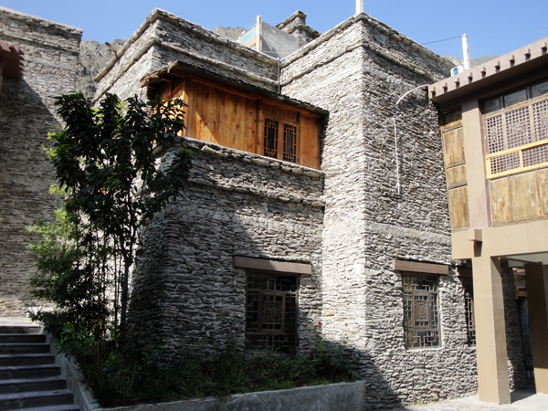 寨内一片黄褐色的石屋顺陡峭的山势依坡逐坡上垒,其间碉堡林立,雄浑挺拔。建筑形式有四、六、八角,以土、石、麻筋、木为料,有的仅用土木建造,但却依然坚固无比,经历了无数的地震后仍完好无损。片石与黄泥砌成的坚固墙体和墙体之间的施工时不绘图,不测算,不吊线,信手砌成,结构匀称,棱角突兀,雄伟坚固,精巧别致,是世界建筑史上绝无仅有的一大奇观,集数学、几何、力学为一体,显示了羌族这个古老的民族在历史上曾经的辉煌,令人叹为观止,吸引了络绎不绝的海内外游客前来观光、考察。