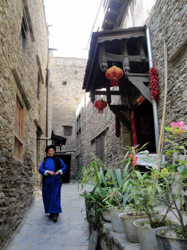 幽深的巷道和羌族阿婆(王铁志摄)