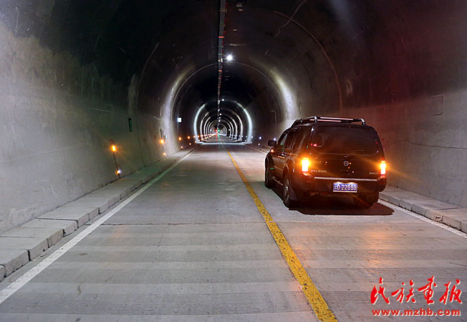 驶过灯火通明的独龙江隧道,穿越高耸的大山也就十分钟的时间(民族画报和勇 摄影)