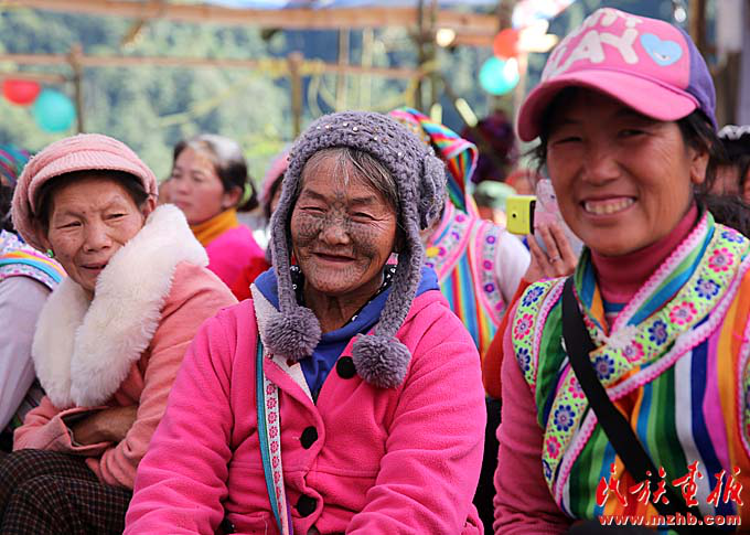 纹面是独龙族独的习俗,纹面老人说起如今的好日子,脸上笑开了花(民族画报滕俊 摄影)
