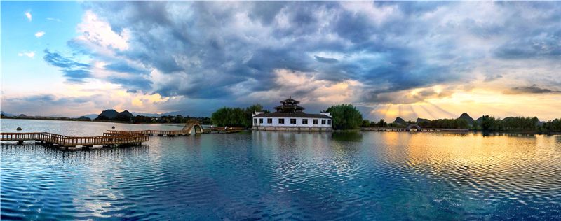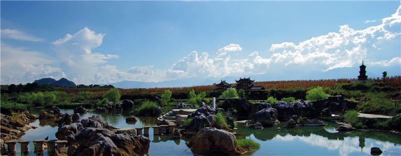 神仙湖景区总布局为一庄(一个休闲别墅农庄)、两村(两个民俗村)、三林(护湖林、档风林、塑景林)、四路(福湖路、环湖路、仙桥路、神剑路)、五景(神仙湖、神仙桥、洋沽河瀑布、神剑山、香樟林),景区内有86亩原始古樟园,265亩脐橙园、186亩丰水梨园、50亩桃园、8亩水中石林园以及拥有232亩水面的神仙湖水上游园。该景区一年四季湖光山色,花果飘香,绿树成荫,生物多样性突出,“氧吧”效应突出,乡野情趣浓郁、自然生态良好,是生态休闲游、健身运动游、生态观光游、休闲度假游的绝佳去处。该镇对景区内的岛中瑶族民俗风情表演台以及神仙湖周边环境进行了扩建和修缮,并且成立了“神仙湖民间艺术团”,为弘扬民俗文化,促进文化大发展大繁荣打下了坚实的基础。