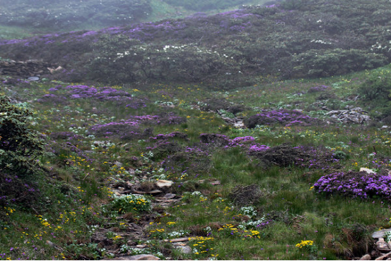 3、苍山杜鹃花——洗马潭景区一个观赏的亮点便是布满高山杜鹃、灌木丛林,每当5月、6月份,黄、白、红杜鹃花盛开,湖边五彩缤纷,斑斓一片。云南省的杜鹃花品种占全国的一半,而大理杜鹃花即占全省的三分之二,其中品种之多、品色和品位之上均首推苍山,其中苍山杜鹃、阔叶杜鹃、和蔼杜鹃、蓝果杜鹃、似血杜鹃等品种为苍山所独有。还有粉紫色的报春花、淡黄的白合花、浓艳的龙爪花,把这里装扮成一个花的海洋。