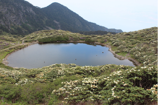 3、七龙女池——七龙女池深藏在苍山清碧溪与桃溪之间的龙溪里,在苍山最深奥隐秘的褶皱中。无论在玉带云游路从南到北、由北往南,还是自下而上,都有八九里路。望穿龙女关,玉局峰顶在暮春的阳光下,雪痕斑驳,稀疏的树木苍然而立,淡淡的云影悠然飘过。两座巨崖之间是青翠的溪水,林木中、峭壁上点缀着一丛丛、一枝枝灿然开放的杜鹃花。
