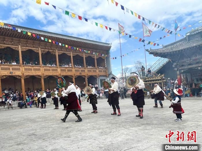 27日,青海黄南藏族自治州同仁市四合吉村,首批国家级“非遗”项目热贡“六月会”民俗活动举行,百余民众祈愿风调雨顺、五谷丰登。