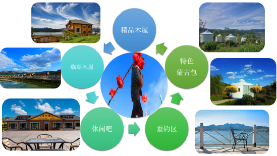 集三园(花园、菜园、果园)、体育广场、纪念馆、民俗馆等项目于一体的休闲观光区和集水上木屋、精品木屋、运动员公寓、蒙古包于一体的特色住宿美食区域。